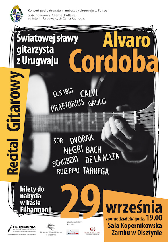 Kancelaria z przyjemnością informuje, iż została współorganizatorem wydarzenia kulturalnego pod patronatem Ambasady Urugwaju w Polsce, jakim jest recital światowej klasy gitarzysty Alvaro Cordoba. Koncert odbędzie się 29 września w Olsztynie. Więcej informacji w linku poniżej.